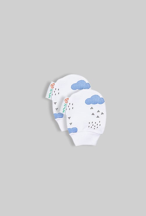 Baby Mittens - Light Blue Clouds (0-3M)