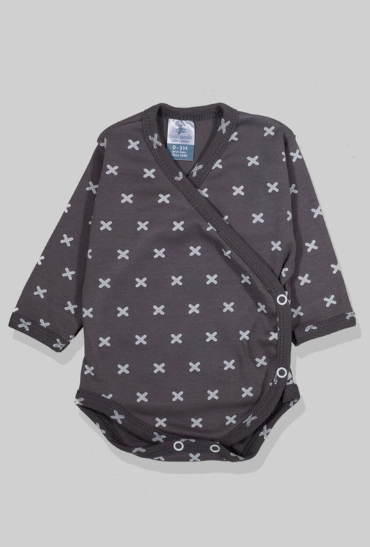 Envelope Bodysuit & Footie Set Flannel - Grey Plusses (0-3M)