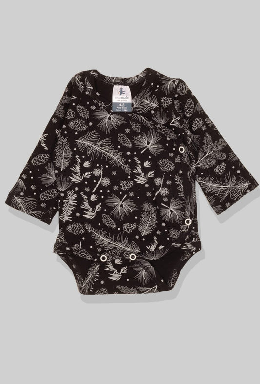 Envelope Bodysuit & Footie Set Flannel - White | Black Feathers (0-3M)